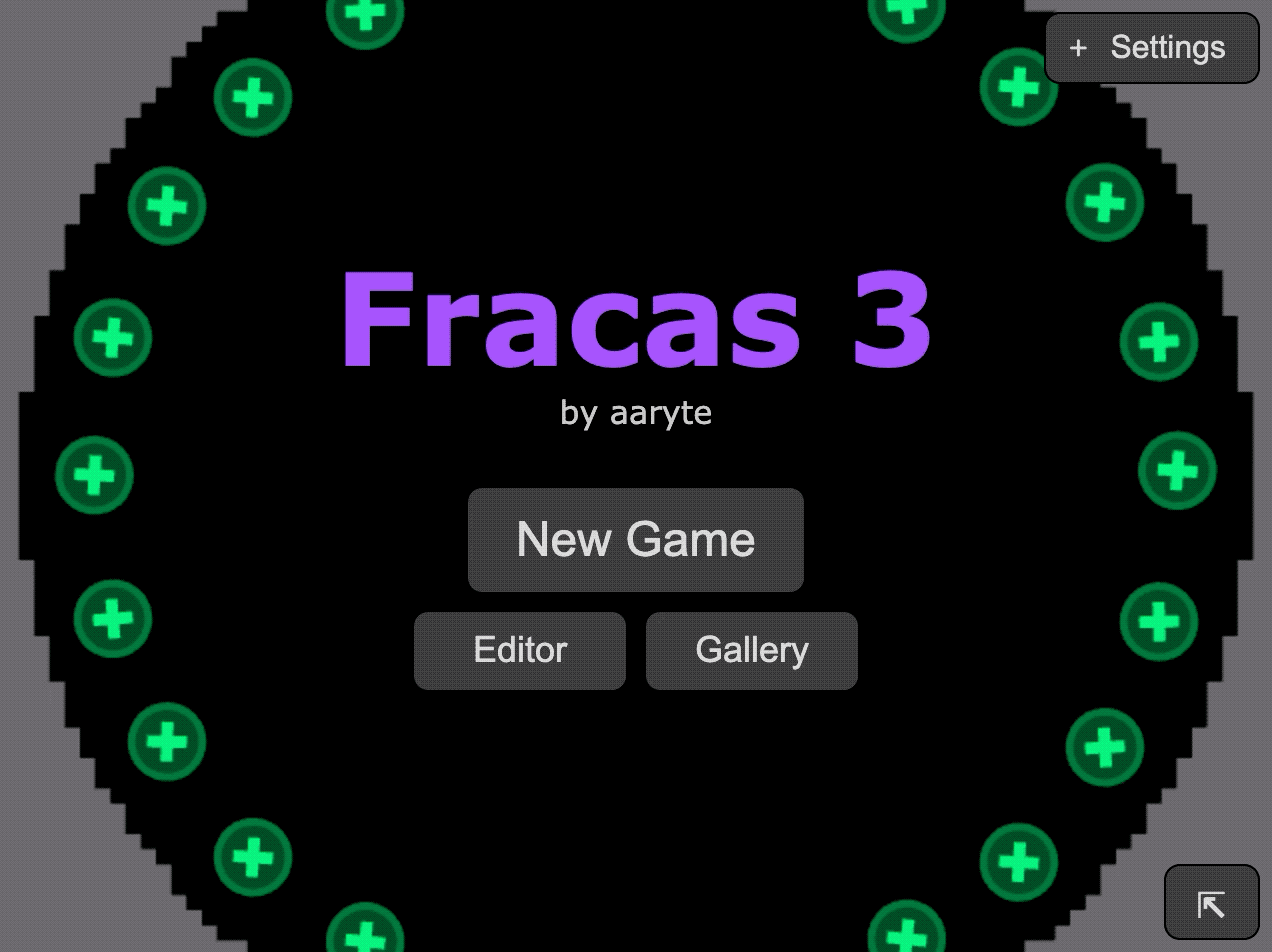 This is a big update for Fracas 3: There are a bunch of new levels, twelve total. The first eight are all completely new, and the last four are adapted from my favorite original two. In general, the l...